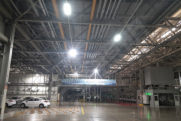 | 項目說明 | 北京現(xiàn)代汽車一、二、三工廠及發(fā)電機(jī)廠車間原來裝的6102盞400W金鹵燈,現(xiàn)全部用我司compactII系列150W鍛壓工礦燈替換,廠房地面平均照度達(dá)到300Lux以上,項目已于2017年8月全部安裝完畢并投入使用。 |